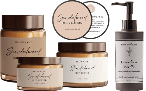 Any lotion bottle, jar, or bar can have its labels customized for optimum adhesion, legibility, and visual balance.
