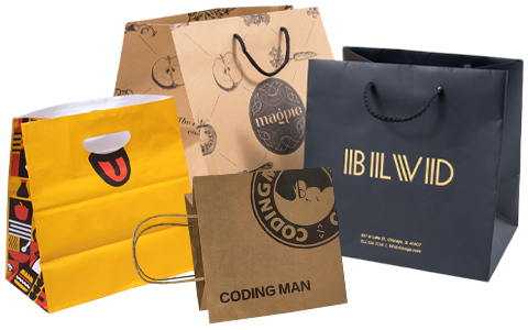 Apart from naturally brown, we manufacture standard white and black paper bags with brand logos, product images, and descriptions in every hue, unique layout, and pattern.